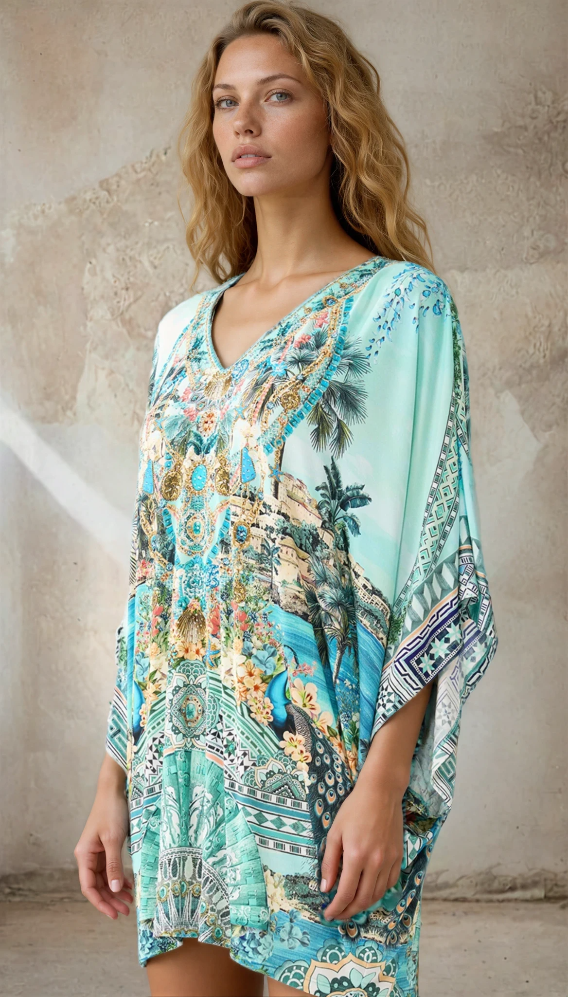 PAULA RYAN Arched Front Dress - Greek Blue Microjersey