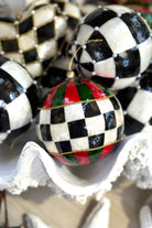 Vibrant and full of festive theatre, this Capiz shell bauble fuses classic pattern with couture flair. Its surface alternates between bold stripes and playful checks, each catching the light with pearlescent brilliance.