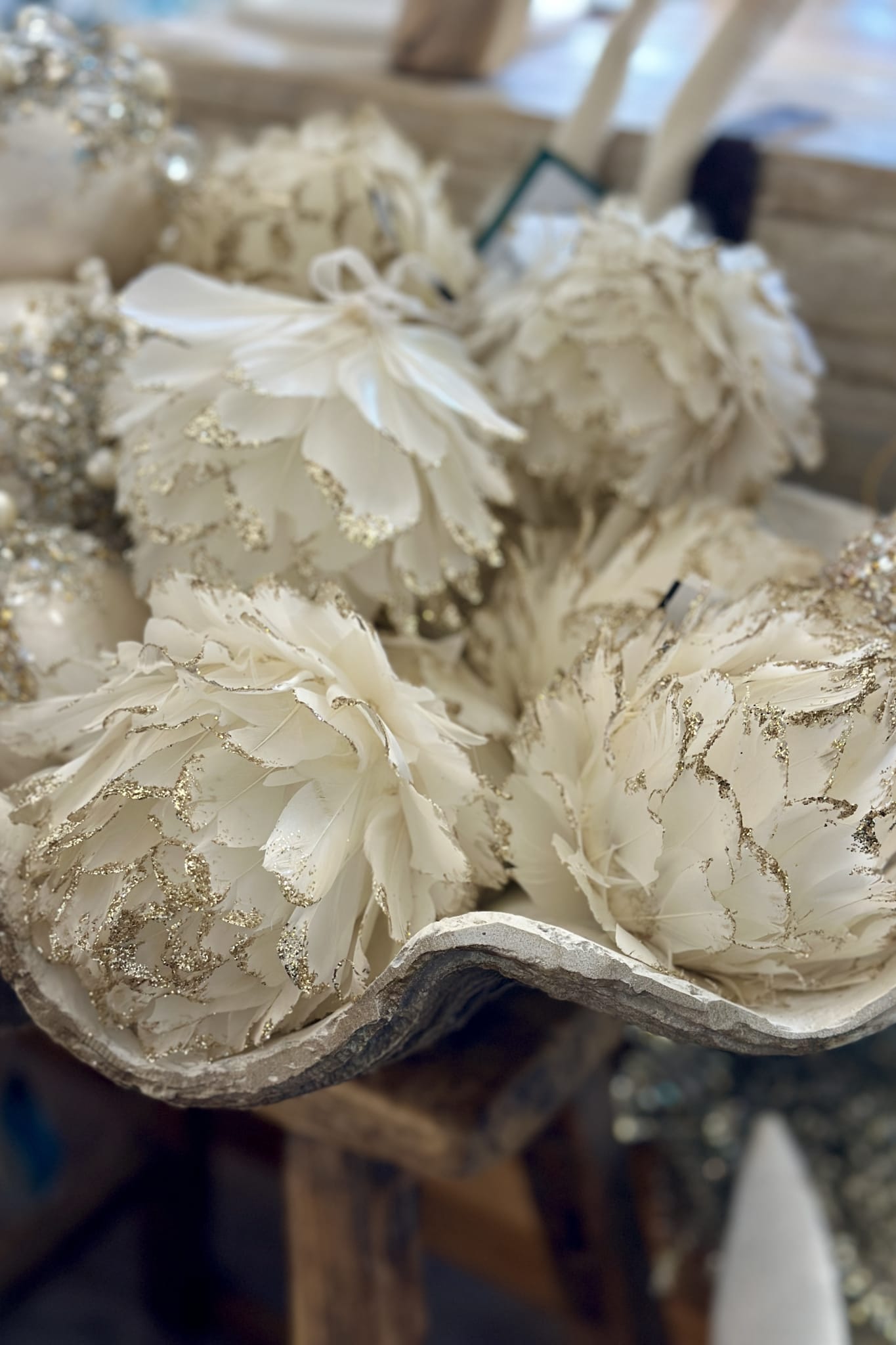 Bring soft texture and ethereal beauty to your Christmas tree, wreath, or decorative bowl.
