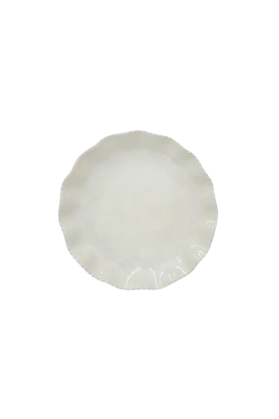 The Scilla dinnerware exudes a timeless elegance reminiscent of an Italian seaside heirloom. Each piece is hand-crafted with scalloped edges that add a touch of vintage charm and rope rim detail giving the dinnerware a distinct look that evokes the feeling of artisanal excellence passed down through generations.