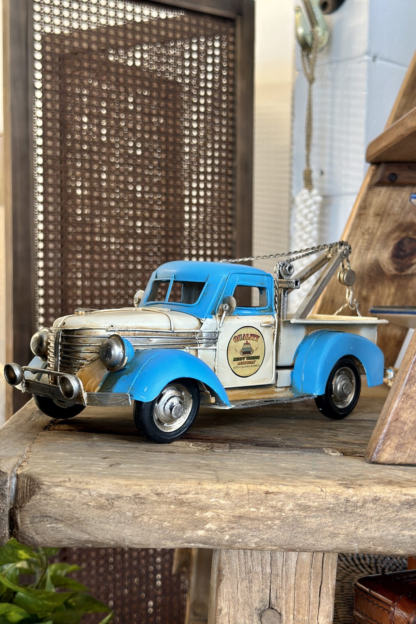 This vintage-style metal tow truck looks like it’s rumbled straight out of an old service yard. With its perfectly worn-in finish, workshop heritage feel, it brings a quiet storied presence to any room.