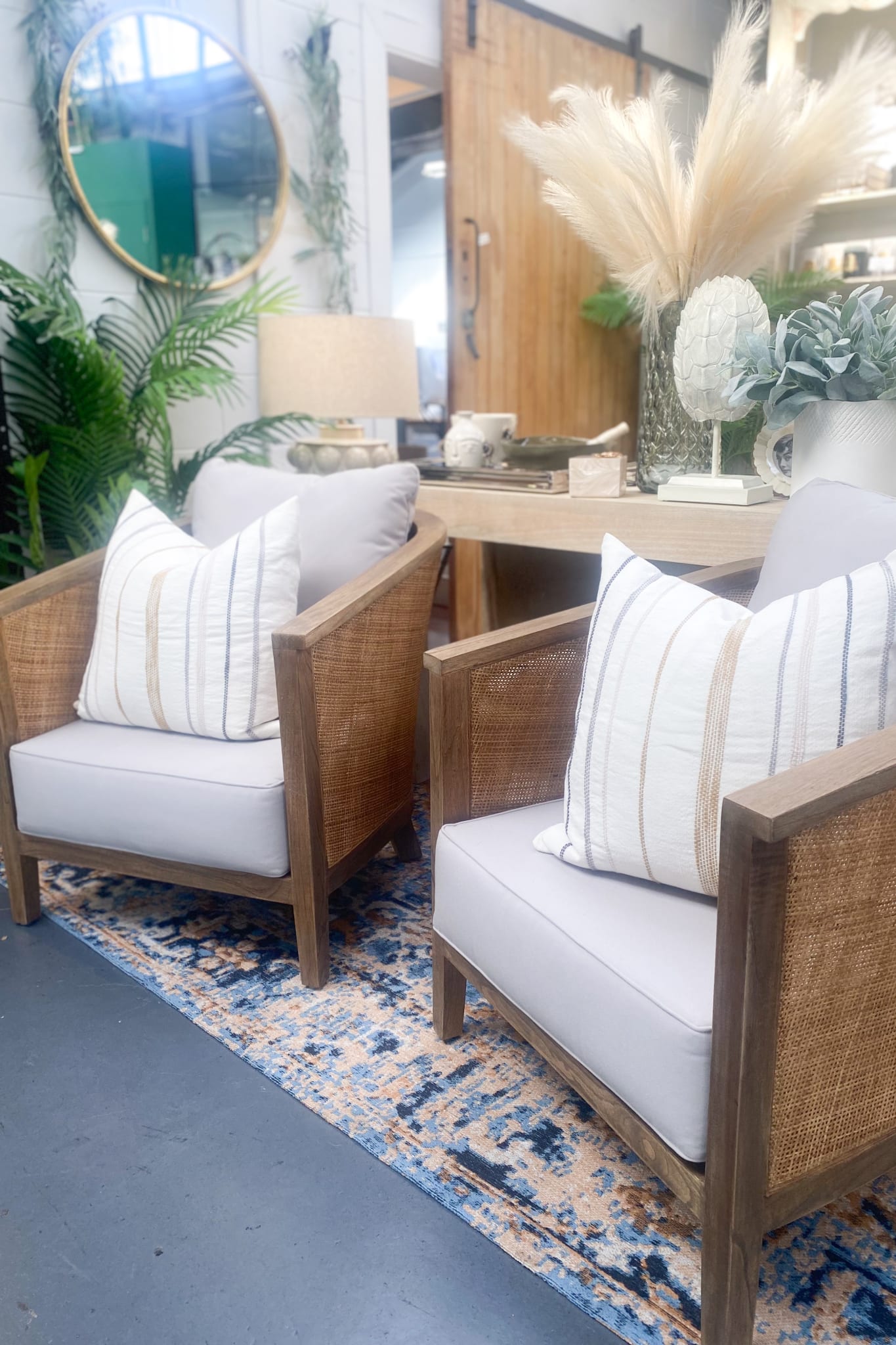 Experience the perfect blend of style and comfort with the Arrowtown Occasional Chair. Made with durable Mindi wood and woven rattan, this chair adds an elegant touch to any room. The dark natural color and canvas upholstery create a cozy and inviting atmosphere.