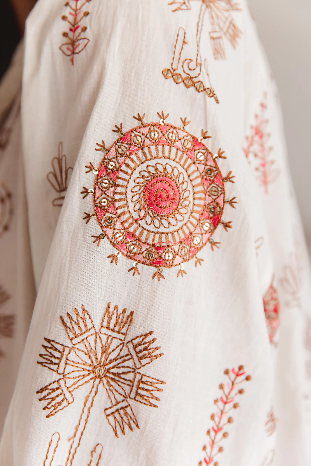 The Santorini Top becomes a versatile addition to your wardrobe, offering endless styling possibilities. Pair it with your favorite denim for a casual daytime look, or dress it up with a flowy skirt for an evening by the seaside. Whichever way you wear it. Crafted from soft cotton and adorned in the mesmerising Temple print, this top becomes a delightful celebration of comfort and style.