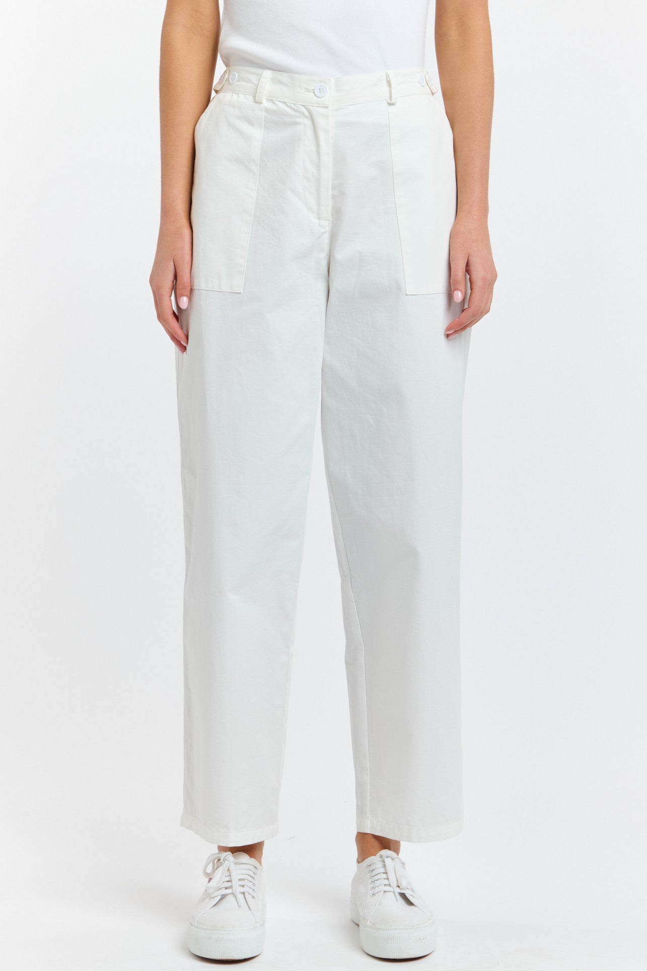 A fresh take on relaxed tailoring, the Belle Pocket Pant by 365 DAYS is your go-to for laid-back refinement. Cut in a crisp white cotton-blend with a soft structure, this easy-fitting style features a flattering high waist, subtle taper through the leg, and oversized front patch pockets for a utilitarian touch. A button tab detail at the waistband adds polish, while the cropped ankle length works perfectly with slides, sneakers or sandals. A warm-weather staple designed for everyday wear – just add a linen shirt or floaty blouse.