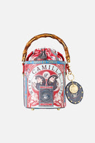 The High Class Hookah Drawstring Bucket Bag With Keyring is a handcrafted silhouette designed by our in house artisans. Reimagined in an exclusive limited edition print, our bucket bag features a natural bamboo handle and a removable drawstring pouch for effortless organization. Finished with a detachable crossbody strap and keyring charm, blending artisanal texture with playful practicality.