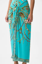 The Totems And Treasures Multi Wear Long Sarong is a handcrafted silhouette designed by our in house artisans. Reimagined in an exclusive limited edition print, our multi wear sarong features an elevated maxi length complete with a relaxed fit. Draping effortlessly across the feminine form, seamlessly tie our shapeshifting style into bespoke and tailored silhouettes.