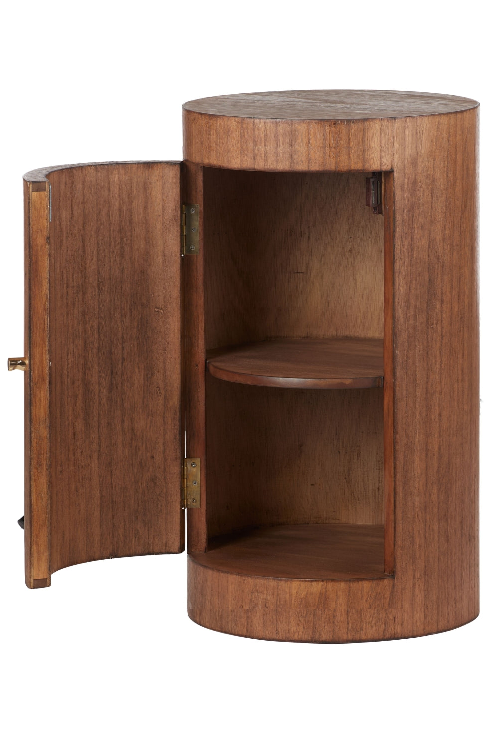 A sleek little powerhouse of storage, disguised as a sculptural side table. The Walnut Column Side Table is crafted from birchwood and finished in a warm walnut tone, giving it that rich, mid-century mood without feeling heavy. Its cylindrical shape feels modern and architectural.