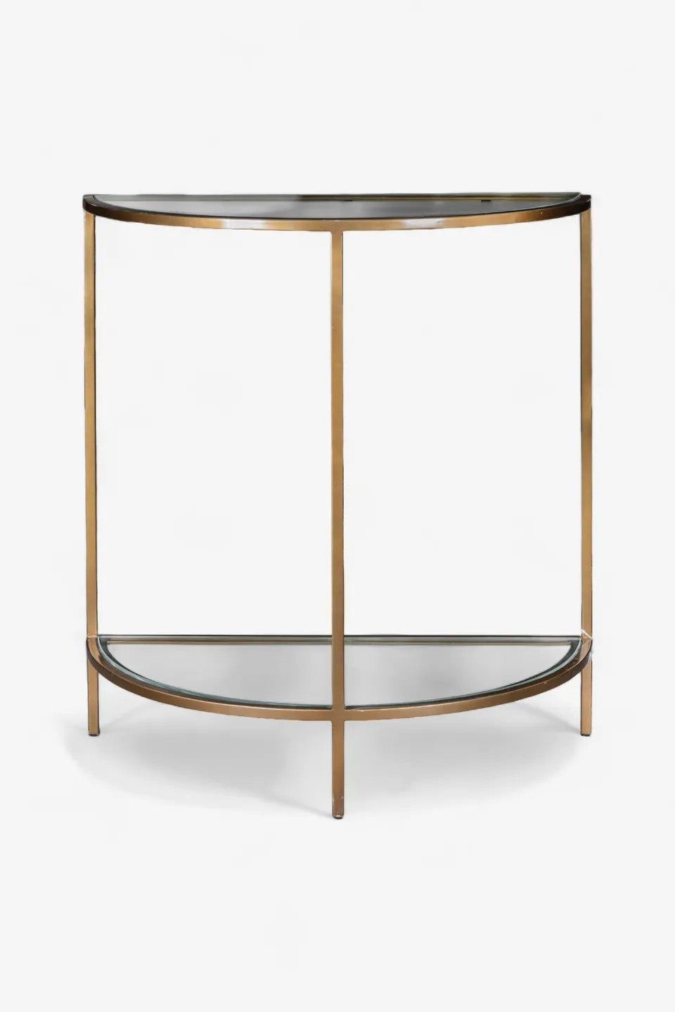 Introducing the Freddy Iron and Glass Console Table. Blending a striking balance of modern yet classic, clean lines and soft curves. The glass top gives a sense of light and space making it the perfect addition for entryways, hallways and living areas.