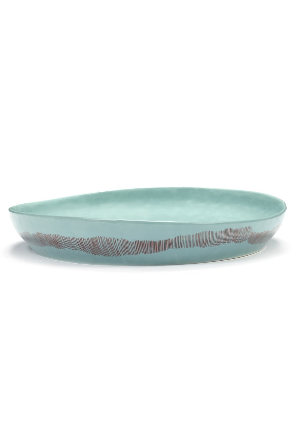 Crafted in Portugal, its painterly glaze and bold contrast of azure blue and deep red stripes capture the joyful spirit of shared dining and perfectly match the atmosphere of Ottolenghi's Feast collection.