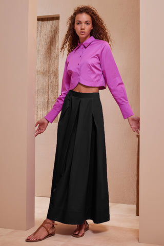 Introducing the DEVOTION TWINS - Kelly Long Skirt Black. Made with high-quality cotton, this skirt features a fixed waistband with side zip and elasticised back.