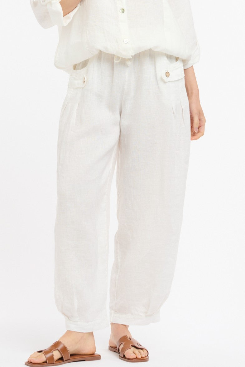 Relaxed, breathable, and impeccably cut, these linen pants from Urban Luxury are the pair you’ll live in through the warmer months. The softly structured waistband sits comfortably without clinging, while the subtle pleating and straight-leg shape create an easy, refined drape. Buttoned utility-style pockets add a touch of interest without overwhelming the clean silhouette.