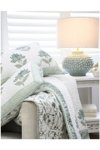 Enhance your bedroom decor with the Bedspread/Quilt Set Blue Sage, featuring a stunning floral design that exudes elegance and tranquillity. This set comes with a Quilt and two matching Pillow Shams that are crafted from premium b'cotton voile for ultimate comfort and breathability. Perfect for adding a touch of sophistication, this beautiful set is sure to attract customers seeking both style and quality in their home.