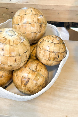 Discover the timeless elegance of our Bone Ball with antique finish. Crafted in 10cm size, this decorative piece adds a touch of vintage charm to any living space. Made of durable bone, it's perfect for adding a sophisticated touch to your home.