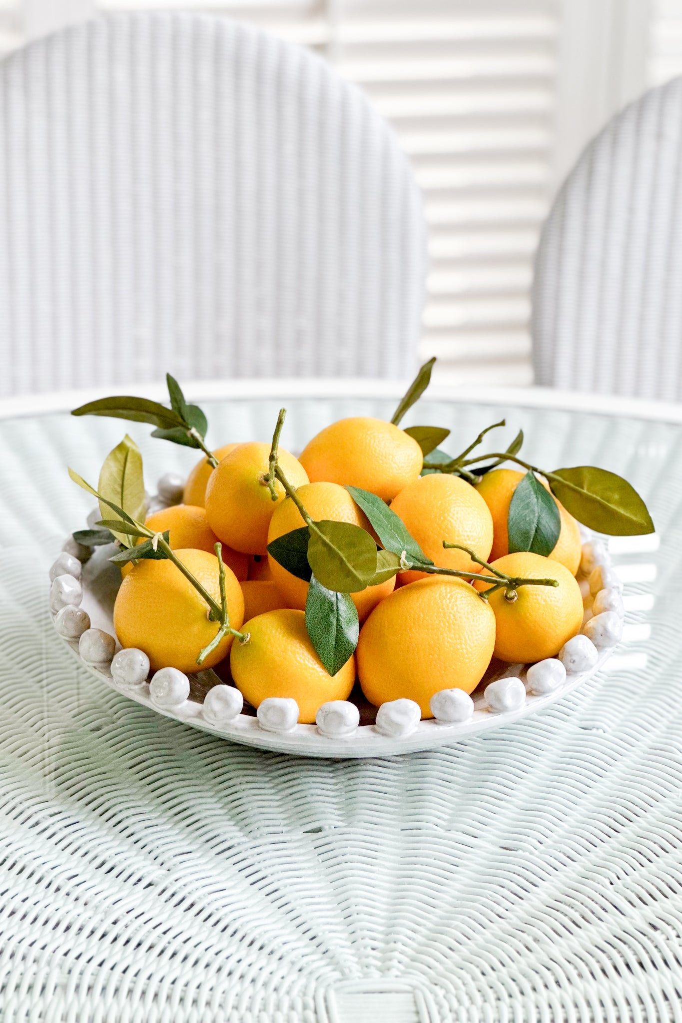 This exquisite terracotta plate showcases meticulous craftsmanship, featuring intricate decorations adorned with charming chunky baubles that add a touch of rustic elegance to your table setting. Its unique design effortlessly combines artistic flair with functional beauty, making it a delightful addition to any dining experience.