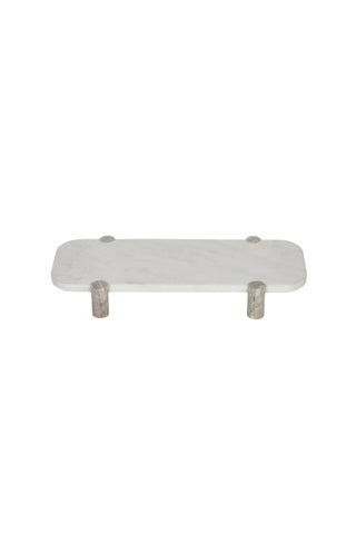This marble platter comes with some serious style with its contrasting tonal legs to elevate it above the surface that it stands on.