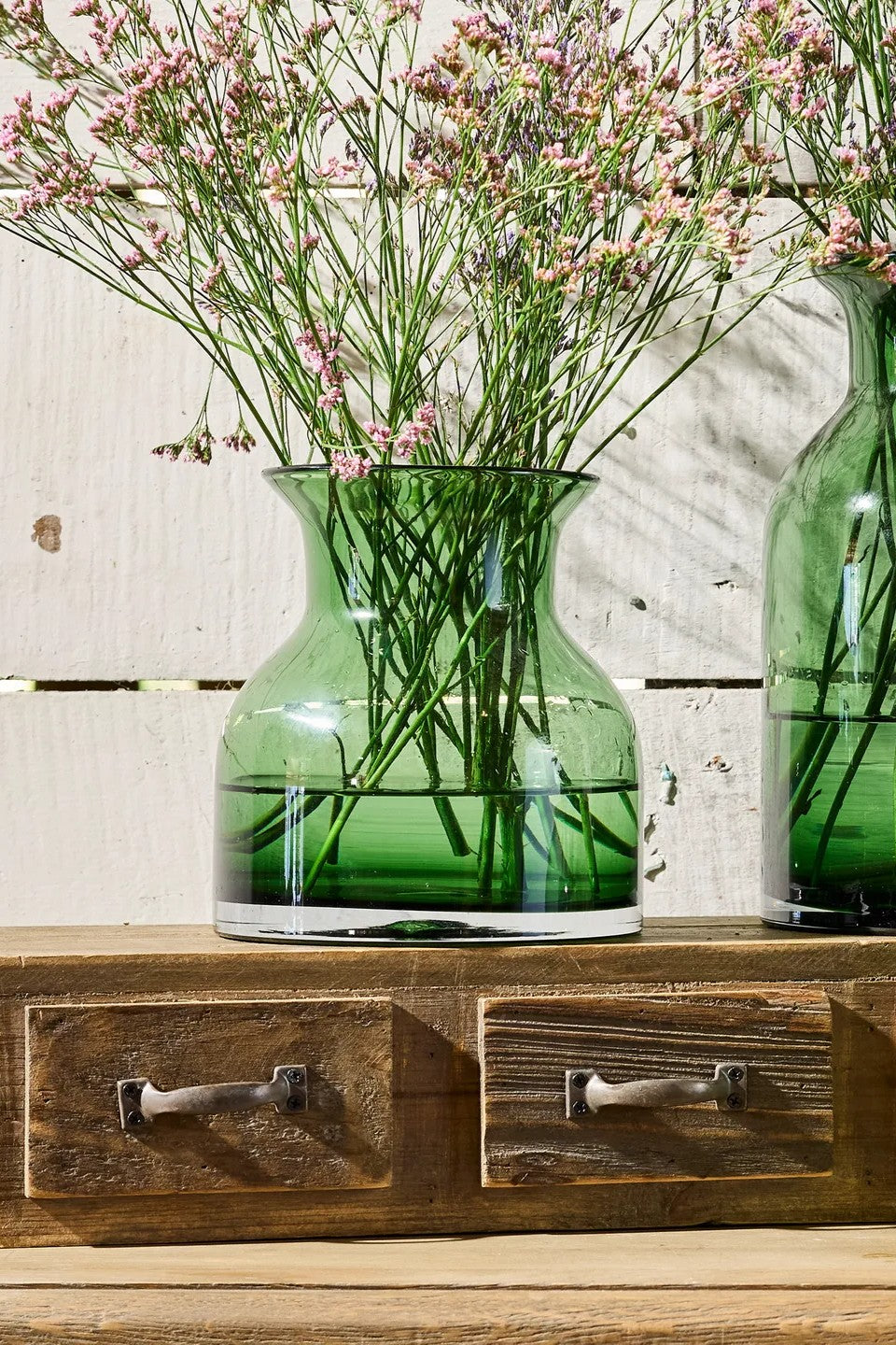 Capture the spirit of Portobello with this Emerald Green Organic shaped Vase. The perfect vessel to arrange fresh flowers or wild greenery in the eclectic, bohemian style of Portobello Rd. Handmade glass in solid green colour, bubbles and small imperfections are to be expected in hand blown glass.
