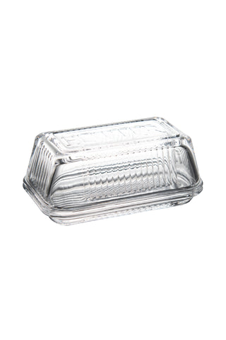 A kitchen classic. We love this ribbed glass butter dish! A must have for any well-equipped kitchen and a well-set table.