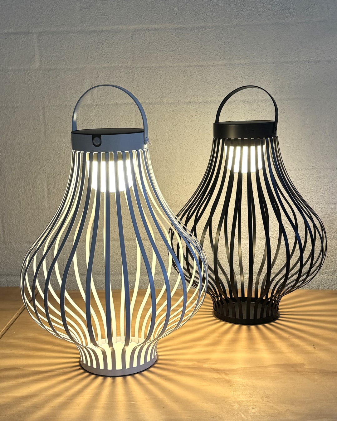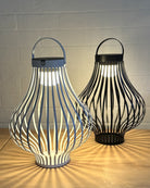 Designed to catch the eye by day and cast a beautiful glow by night, this sculptural solar lantern blends artistry with function. Its curved, open-weave frame creates a striking silhouette that plays with light and shadow, while the built-in solar panel powers a warm LED glow after dusk.