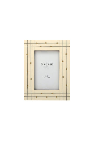 A classic frame with its natural tones will always enhance a treasured pic no matter where it stands. The contrasting borders punctuated with brass dots bring a modern yet simple twist.