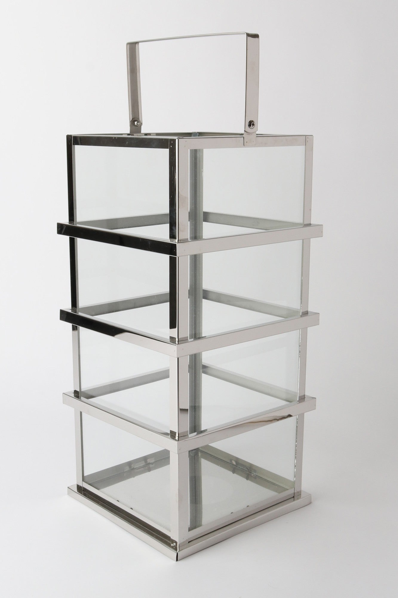 With its gleaming stainless-steel frame and crisp glass panels, this lantern embodies polished sophistication.
