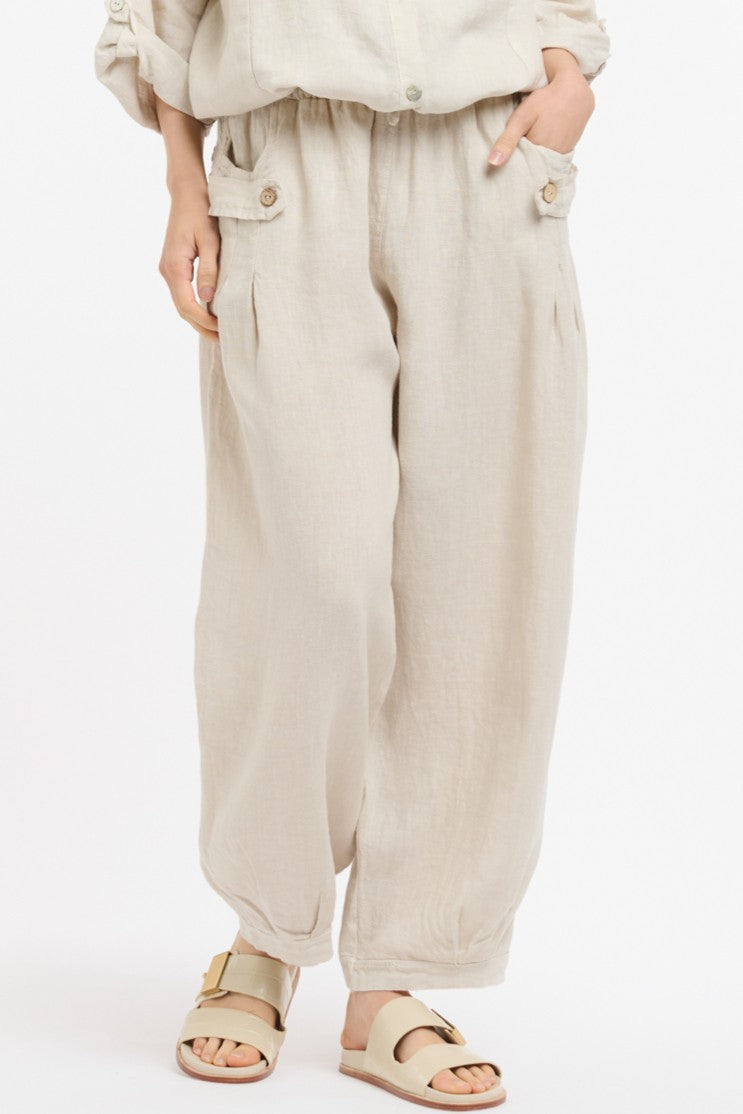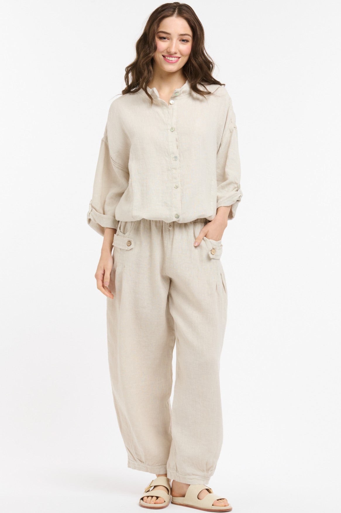 Relaxed, breathable, and impeccably cut, these linen pants from Urban Luxury are the pair you’ll live in through the warmer months. The softly structured waistband sits comfortably without clinging, while the subtle pleating and straight-leg shape create an easy, refined drape. Buttoned utility-style pockets add a touch of interest without overwhelming the clean silhouette.